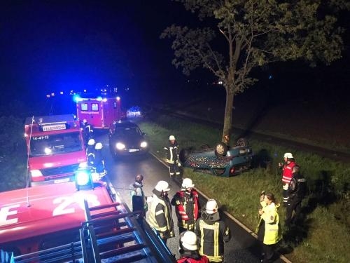 hm1 - PKW auf Dach, 1 Person im Fahrzeug, fraglich ob eingeklemmt