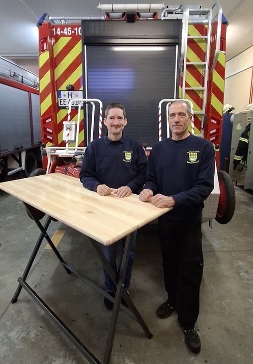Die Vorsitzenden des Fördervereins der Freiwilligen Feuerwehr Egestorf, Andreas Prietzsch und André Lattmann, haben der Einsatzabteilung der Feuerwehr Egestorf einen hochwertigen Grill sowie drei neue Stehtische überreicht. Ortsbrandmeister Jan-Henrik Büthe nahm die Ausstattung mit großer Freude entgegen.