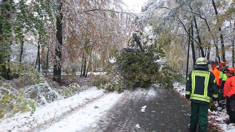 In der Einfahrt zum Waldkater blockierte ein durch die Schneelast umgestürzter Baum die Fahrbahn und hatte auch zwei Leitungen für die Straßenbeleuchtung beschädigt. Zudem hingen auch in diesem Bereich größere Äste auf die Fahrbahn. Ebenfalls vor Ort waren die Avacon und die Forst tätig. In Absprache mit der Polizei wurde aus Sicherheitsgründen die Sperrung L391 ab dem Egestorfer Bahnhof bis zum Ortseingang Wennigser Mark veranlasst.