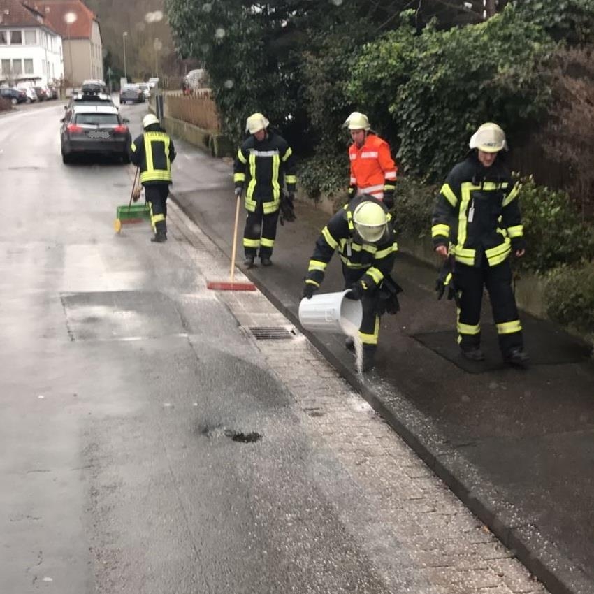 Wir wurden zu einer ca. 30 Meter langen Ölspur auf der Nienstedter Straße alarmiert. Am Einsatzort konnte an zwei Stellen auf der Fahrbahn eine Verschmutzung festgestellt werden. Nach Absprachte mit der Polizei streuten wir die verunreinigten Bereiche mit einem Sack Ölbindemittel ab und stellten Warnschilder auf.