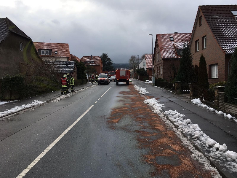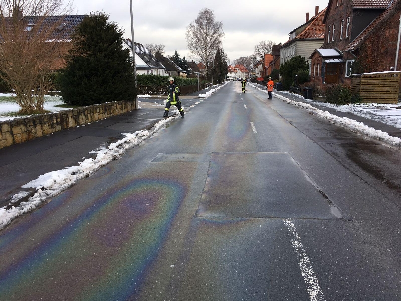 Wir wurden von der Ortsfeuerwehr Kirchdorf zu einer längeren Ölspur in Egestorf und Kirchdorf nachalarmiert. Betroffen waren folgende Straßen: Landstraße, Egestorfer Straße, Stoppstraße und Ellernstraße. Die Spur wurde mit Ölbindemittel abgestreut. Da vom Baubetriebshof der Stadt Barsinghausen kurzfristig kein zusätzliches Ölbindemittel ausgefasst werden konnte, wurde zusätzlich noch die Schwerpunktfeuerwehr Barsinghausen nachalarmiert. Insgesamt wurden ca. 70 Säcke Ölbindemittel auf die Straßen ausgebracht. Um die enorme Menge an Bindemittel aufzunehmen, wurde vom Einsatzleiter eine Kehrmaschine angefordert.