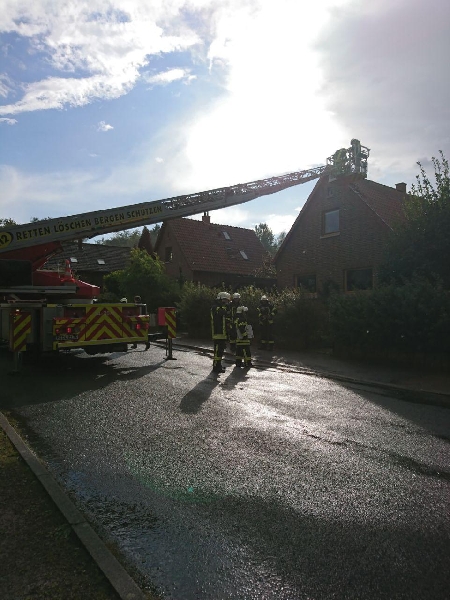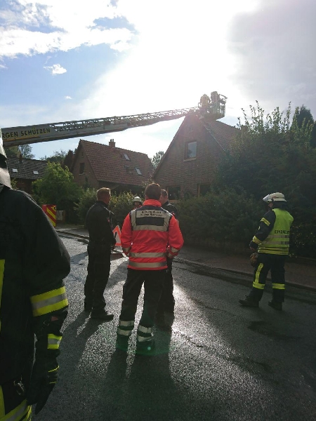 Um 16:06 Uhr wurden die Feuerwehren des Löschbezirks Egestorf, bestehend aus den Ortswehren Egestorf, Kirchdorf und Langreder zu einem Blitzeinschlag in ein Wohnhaus in der Rosenstraße alarmiert. Es sollte nach dem Blitzeinschlag aus dem Dachstuhl Rauch austreten. Bei Eintreffen der Feuerwehr war kein Rauch mehr sichtbar. Am Dach fehlten mehrere Ziegel und es war leichter Brandgeruch warnehmbar. Um einen Schwelbrand auszuschließen wurde aus Barsinghausen die Drehleiter und Wärmebildkamera angefordert. Sowohl von oberhalb mit der Drehleiter als auch innerhalb des Gebäudes konnten mit der Wärmebildkamera keine Auffälligkeiten festgestellt werden. Für die Dauer des Einsatzes war die Rosenstraße im Bereich der Einsatzstelle gesperrt. Im Einsatz waren insgesamt 41 Feuerwehrleute aus Egestorf, Barsinghausen und Langreder mit 8 Fahrzeugen sowie die Polzei und vorsorglich der Rettungsdienst. Die Ortsfeuerwehr aus Kirchdorf konnte auf Grund von Parallel-Einsätzen in Kirchdorf die Einsatzstelle in Egestorf nicht anfahren.