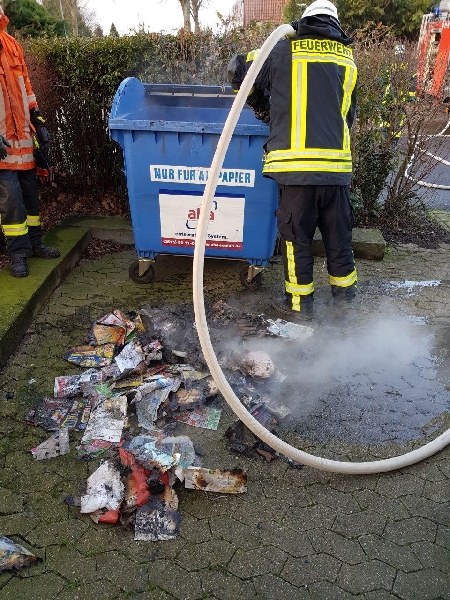 Um 13:50 Uhr wurde die Ortsfeuerwehr Egestorf zu einem Containerbrand in die Straße Die Heide alarmiert. Der Papiercontainer wurde durch die Feuerwehr umgelegt, das Papier ausgebreitet und abgelöscht. Anschließend wurde die Einsatzstelle an die Polizei übergeben. Im Einsatz waren 16 Feuerwehrleute mit 3 Fahrzeugen sowie die Polzei.