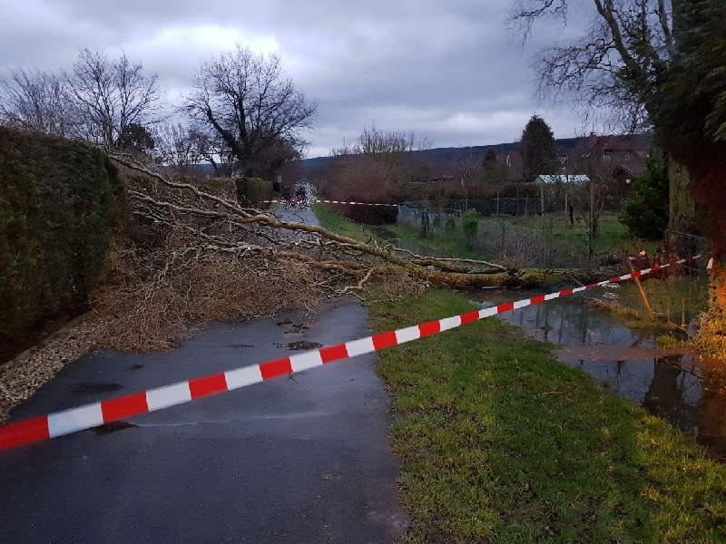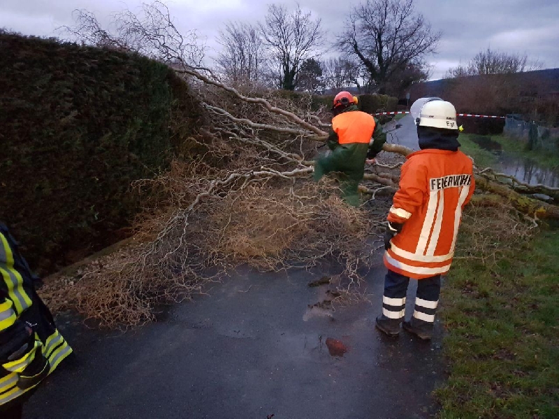 Während des Einsatzes in der Straße Die Heide kam es in der Weberstraße zu einem Parallel-Einsatz. Mit dem Manschaftstransportwagen (MTW) und einer Kettensäge wurden um 17:00 Uhr 4 Kameraden vorübergehend aus dem Einsatz Die Heide herausgelöst um in der Weberstaße tätig zu werden. Dort lag ein Baum auf der Straße. Der Baum wurde mit der Kettensäge zerteilt und von der Straße entfernt. Dieser Einsatz war um 17:30 Uhr beendet.