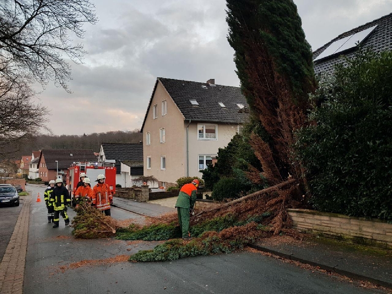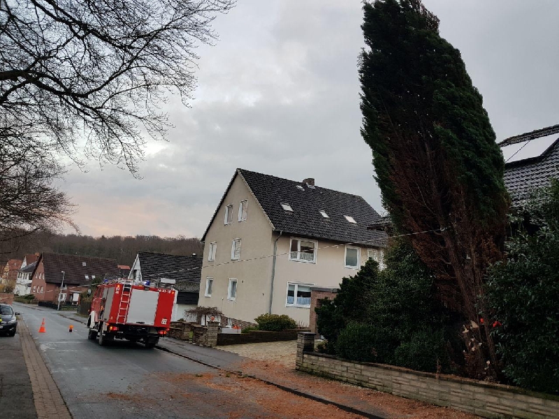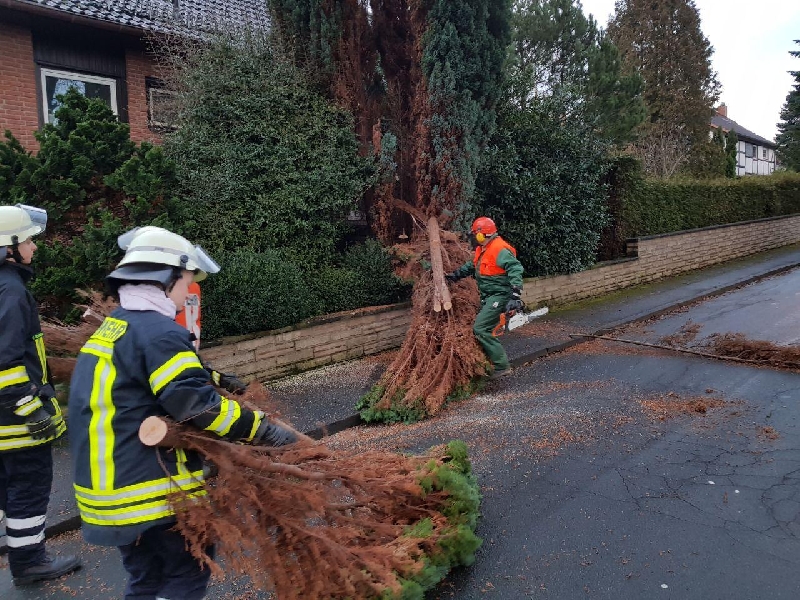 Nach einem Hinweis hatte Ortsbrandmeister Sven Sörenhagen sich ein Bild von der Lage Am Schützenplatz Ecke Nienstedter gemacht. Der Wurzelteller eines Nadelholz-Baumes hatte sich aus dem Erdreich gelöst und der ca. 10m hohe Baum drohte auf die Straße und den gegenüberliegenden Spielplatz zu stürzen. Gegen 15:40 Uhr lies Sörenhagen seine Ortsfeuerwehr durch die Regionsleitstelle alarmieren. Der Baum wurde mittels Motorsäge gefällt, zerkleinert und die Wege wieder freigeräumt. Im Einsatz waren 11 Feuerwehrleute mit 2 Fahrzeugen. Gegen 16:30 Uhr waren die Kameraden wieder eingerückt.
