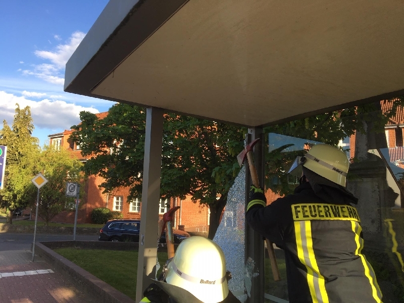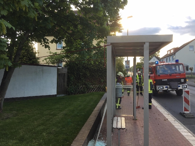 Gegen 18:30 Uhr kontaktierte die Leitstelle den Egestorfer Ortsbrandmeister Sven Sörenhagen. An der Bushaltestelle "Egestorf Weberstraße" war ein Hydrantendeckel in eine Glasscheibe des Wartehäuschens geflogen und die Stabilität des Häuschens sei wahrscheinlich gefährdet. Die Polzei war vor Ort und ließ von der Straßenmesterei bereits den Hydrantendeckel mittels Warnbake gegen ein erneutes Wegschleudern sichern. Ortsbrandmeister Sörenhagen machte sich zunächst selbst ein Bild von der Einsatzstelle und ließ gegen 18:50 Uhr seine Ortsfeuerwehr alarmieren. Da Sörenhagen selbst mit aufsichtspflichtigen Kindern vor Ort war, übergab er die Einsatzstelle nach Eintreffen seiner Feuerwehrleute an seinen Stellvertreter Marc Kohlert. Dieser ließ zunächst das restliche Glas aus dem Rahmen entfernen und die Gosse und den Gehweg fegen. Anschließend musste aus Sicherheitsgründen die bereits teils gelöste Innenverkleidung des Daches abgenommen werden. Da durch die fehlende Glasscheibe die Stabilität des Wartehäuschens nicht mehr vollständig gegeben war, wurden die Pfeiler mittels Seil an einem Baum fixiert. Anschließend wurde die Einsatzstelle an die Stadtwerke Barsinghausen übergeben. Gegen 20:00 Uhr war der Einsatz für die Feuerwehr beendet. Im Einsatz waren 9 Feuerwehrleute mit dem Löschgruppenfahrzeug (LF8), die Polizei, die Landesstraßenmeisterei und die Stadtwerke.