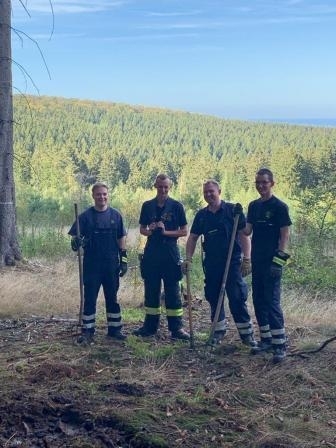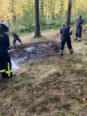 Ca. 200 m oberhalb der Bösquelle glimmten ungefähr 20 m² Waldboden. Um an den Brandherd zu gelangen, musste aufwendig eine Schlauchleitung durch das Dickicht verlegt werden. Das Feuer hatte sich schon tief in den Boden gefressen und wurde mit einem C-Rohr abgelöscht, weiter wurde der Waldboden mit Äxten, Spaten, Schaufeln und Dunggabeln umgegraben, um an die tiefer gelegenen Glutnester zu gelangen.
