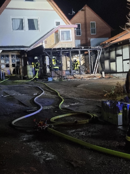 Die Einsatzkräfte löschten den Brand und untersuchten anschließend Carport und Nebengebäude auf weitere Brand- und Glutnester. Da die Brandursache zum Zeitpunkt des Einsatzes ungeklärt war, wurde die Kriminalpolizei hinzugezogen.