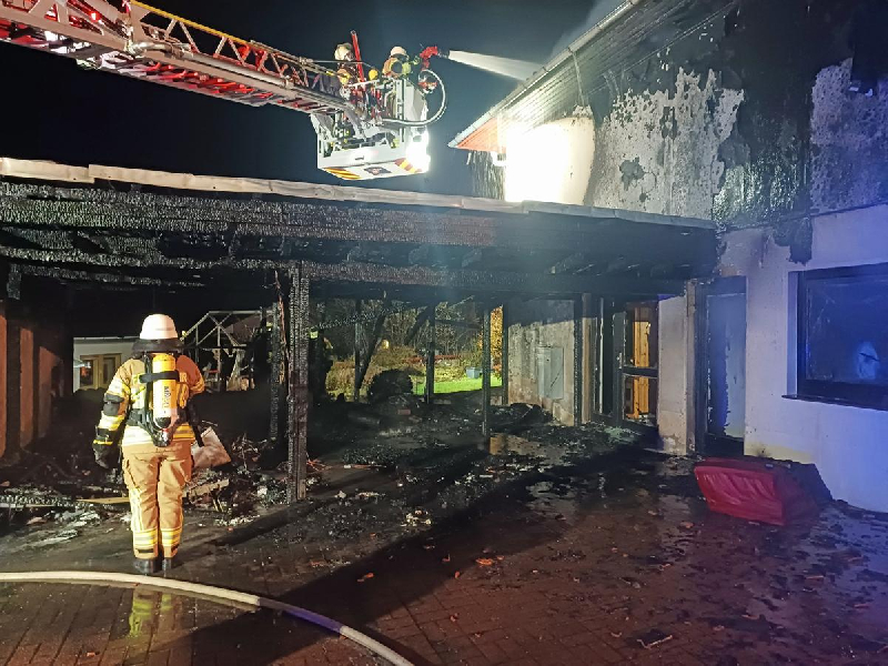 Schon um 20:39 wurde in Nienstedt Feuer gemeldet. Ein Wohnwagen war in Flammen aufgegangen, die dann auf das Carport überschlugen. Das sich schnell ausbreitende Feuer griff dann auf den Dachstuhl des angrenzenden Wohnhauses über. Die Freiwillige Feuerwehr Bad Münder mit den Ortsfeuerwehren Nienstedt, Bakede, Beber, Hamelspringe und Rohrsen konnten einen Vollbrand des Hauses zwar verhindern, dennoch ist das Wohnhaus auf Grund von Feuer und eingesetztem Löschwasser unbewohnbar.