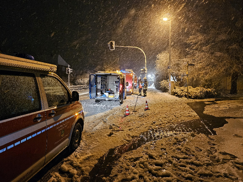 Durch die weiteren Erkenntnisse aus den umliegenden Entwässerungssystemen und mit Hilfe eines speziellen Mess- und Horchgerätes von Wasserfließgeräuschen, konnte die vermeintliche Ursache festgestellt werden: Eine geplatzte Wasserleitung im Erdreich Richtung Sportplatz. Die entsprechende Leitung wurde abgeschiebert und abgewartet, ob die Maßnahmen der Feuerwehr in den Häusern nun Wirkung zeigte.