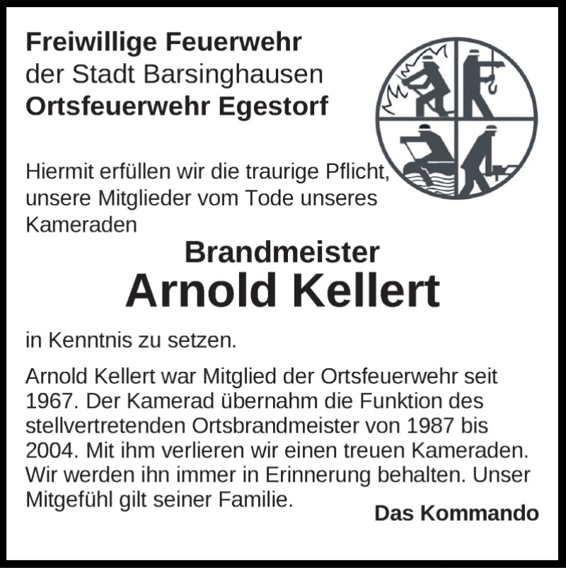 Wir trauern um unseren Kameraden Brandmeister Arnold Kellert.