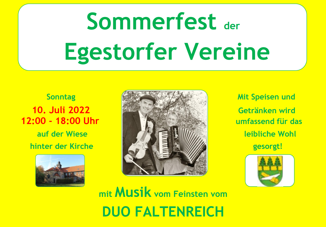 Am Sonntag (10. Juli) findet ab 12:00 Uhr auf der Wiese hinter der Kirche das Sommerfest der Egestorfer Vereine statt: