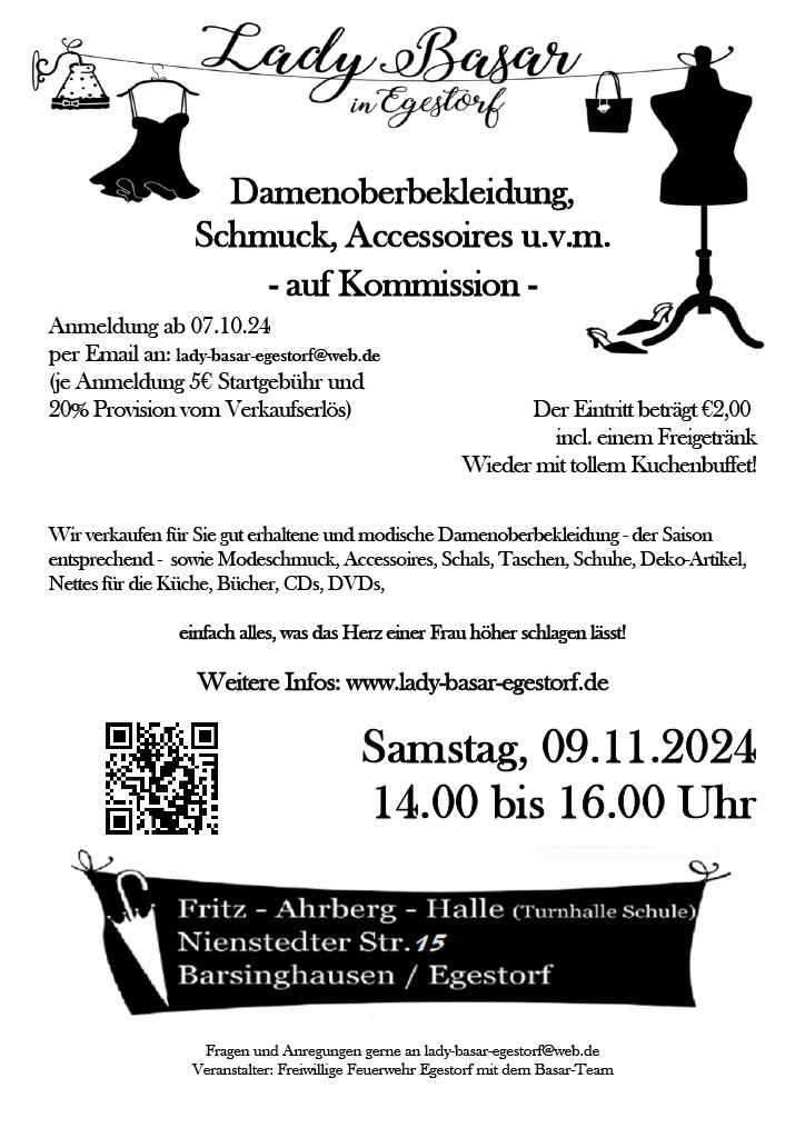 Es ist wieder soweit, der Lady-Basar findet wieder am 09.11.2024 in der Fritz-Ahrber-Halle statt. Alle Infos im Flyer.