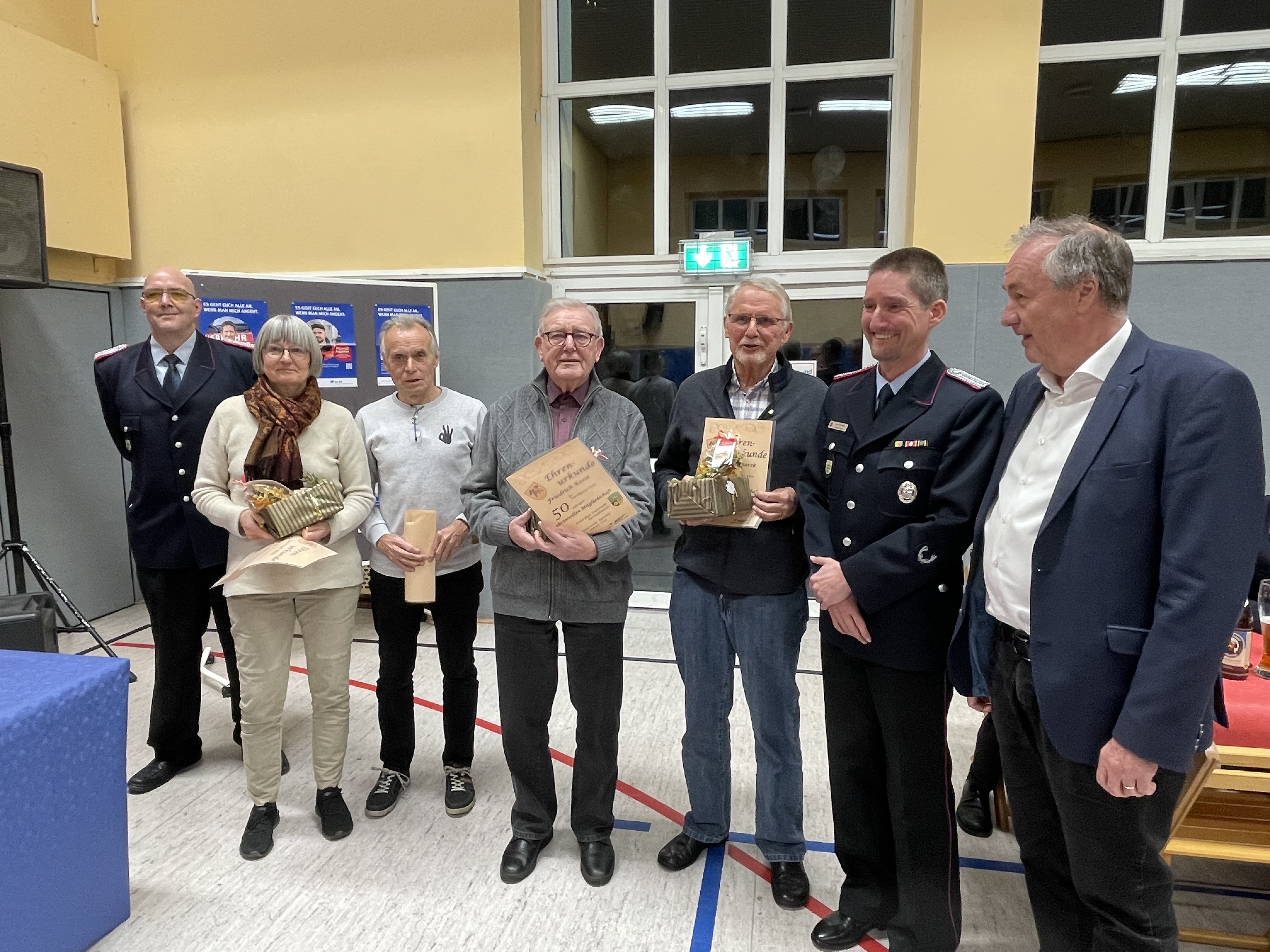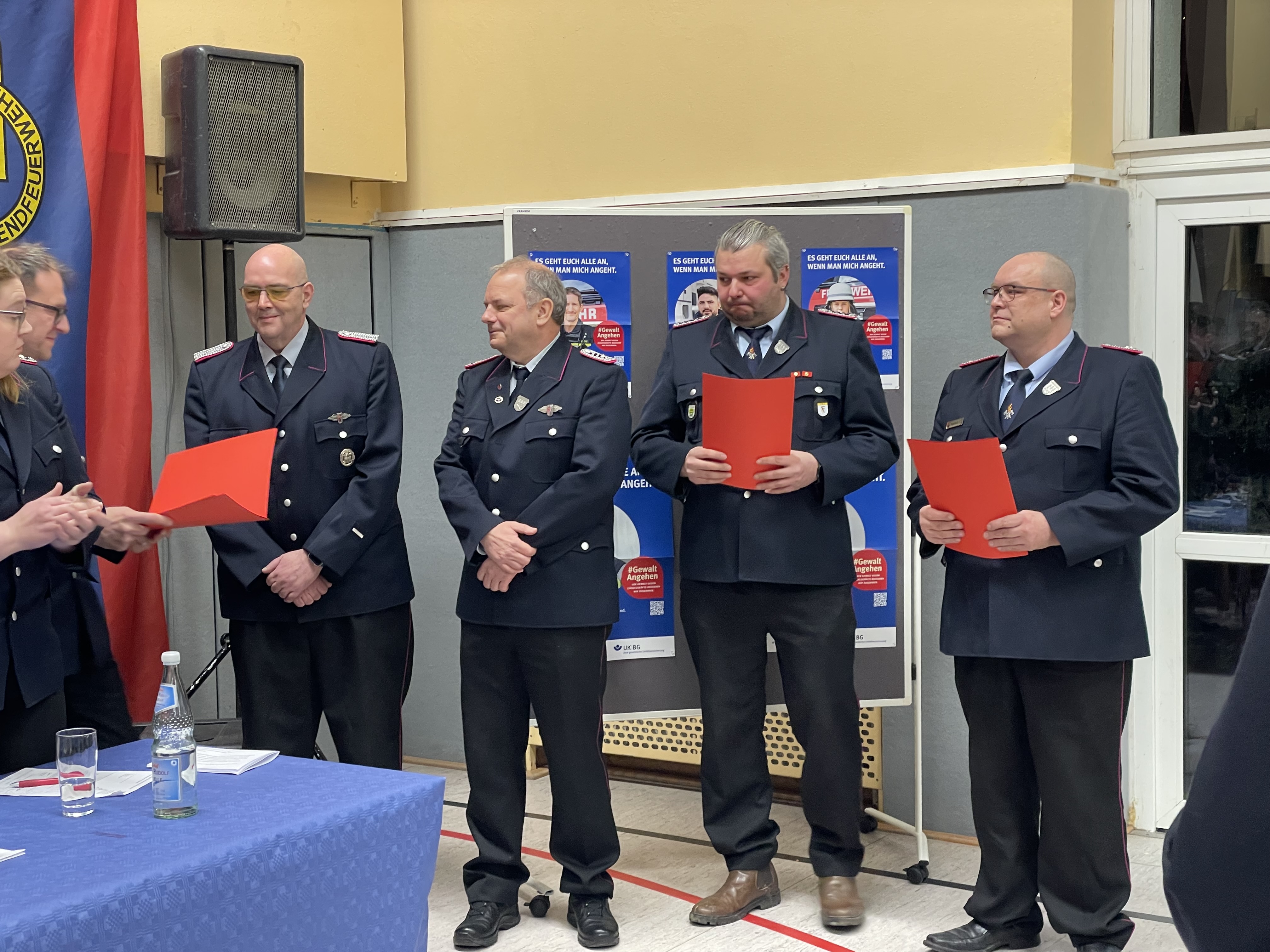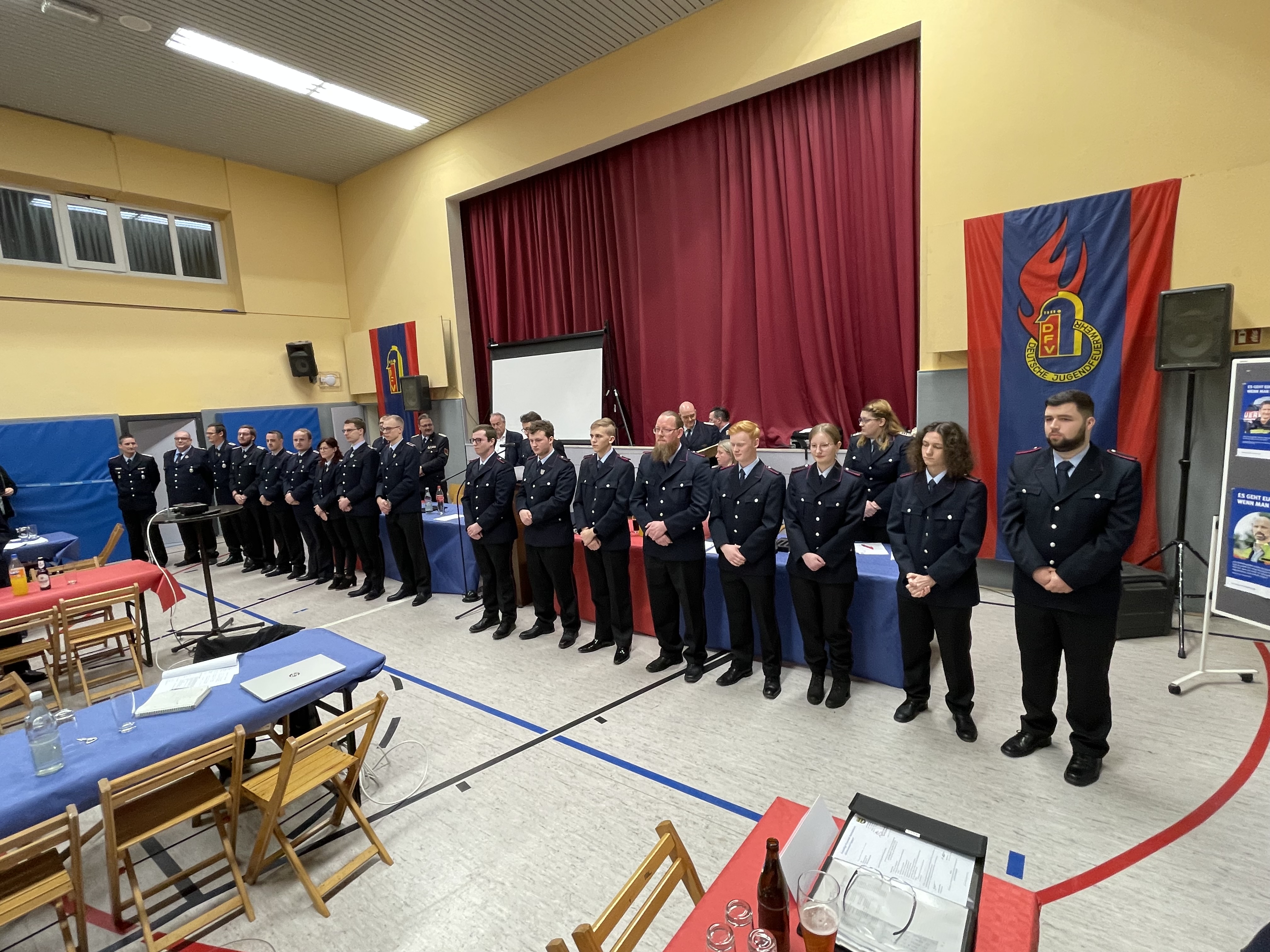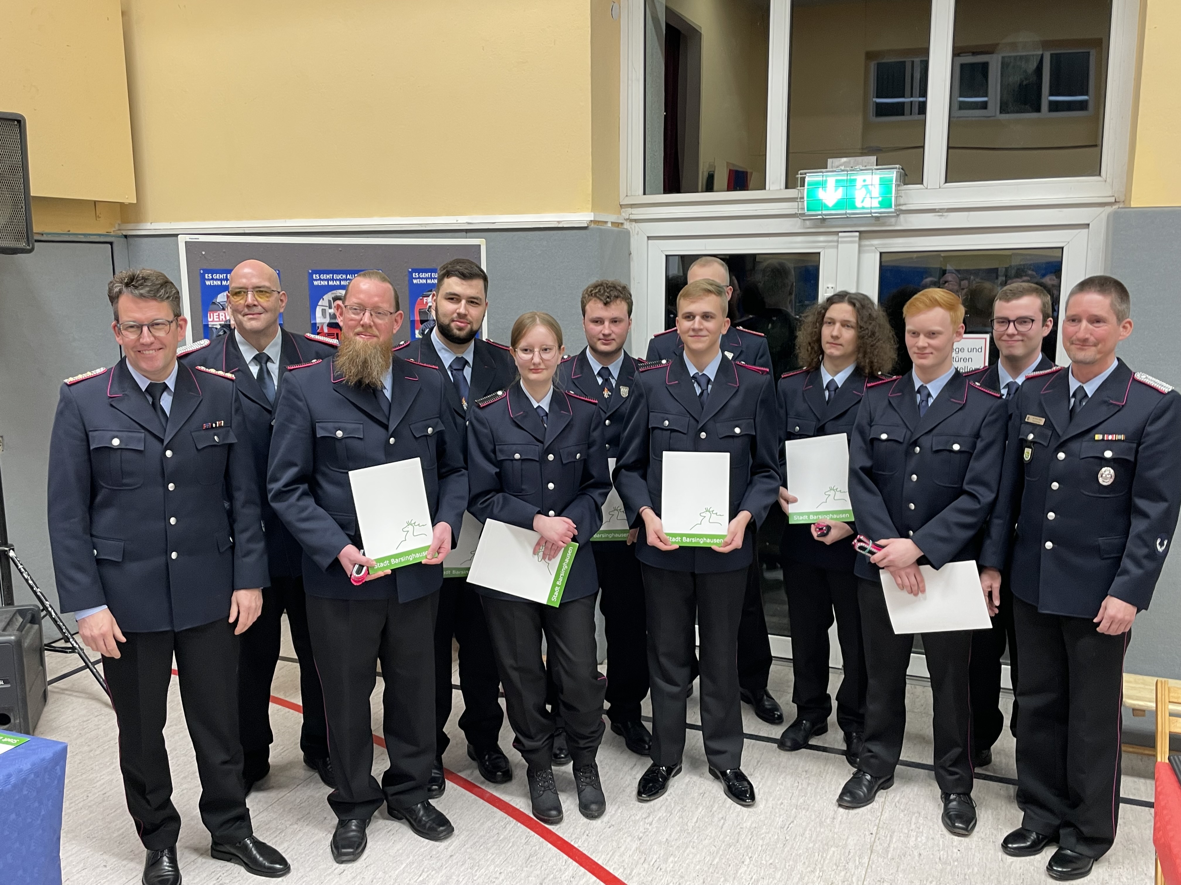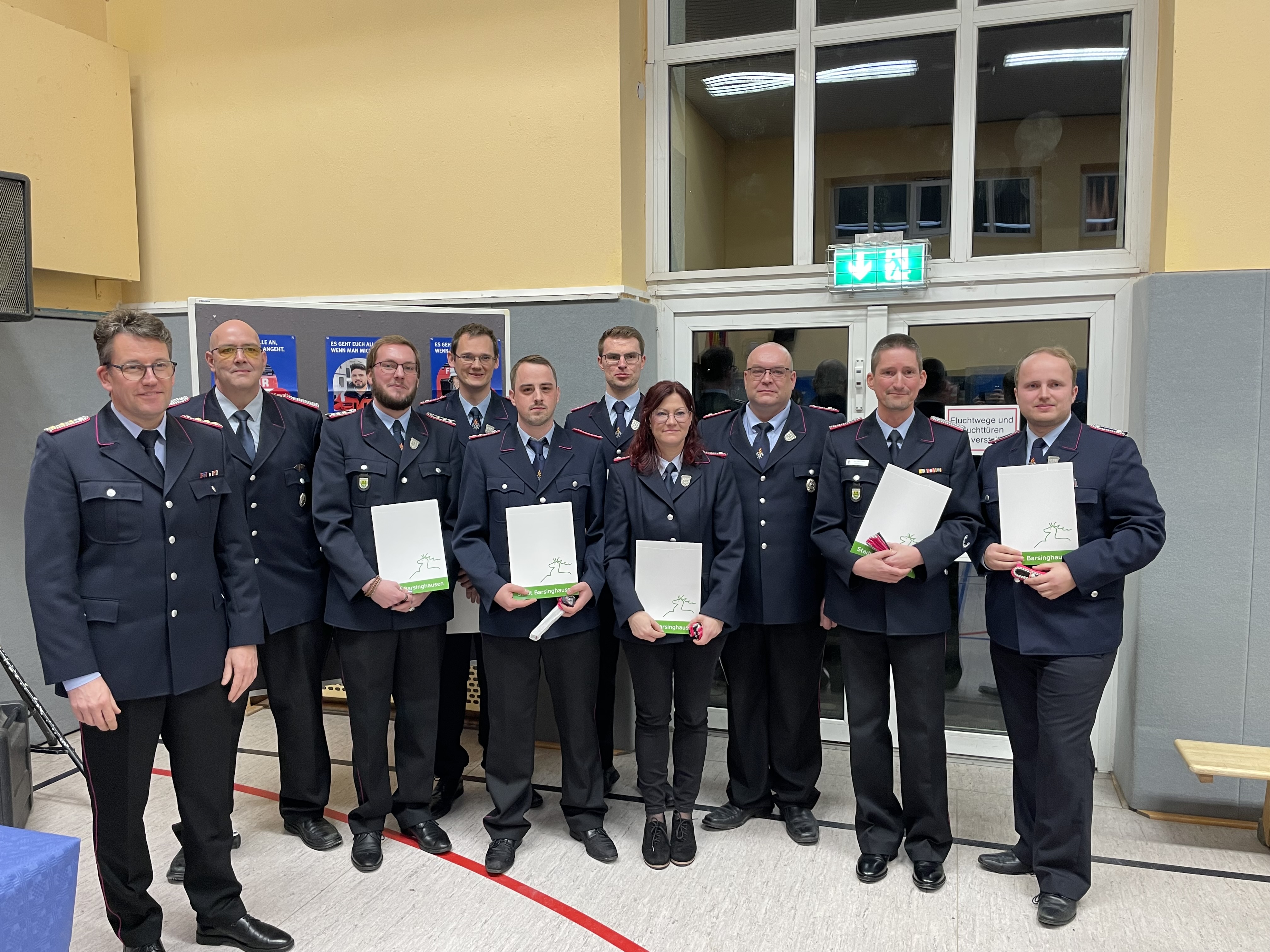 Zu Hauptfeuerwehrmännern wurden Marvin Jordan und Cedric Thadewald befördert, Vivian Falb zur Hauptfeuerwehrfrau. Zum Löschmeister wurden Stephan Law und Pascal Meyerhoff befördert. Hauptlöschmeister sind nun Lars Harborth und Christian Kopetsch. Jan-Henrik Büthe wurde zum Oberbrandmeister befördert.