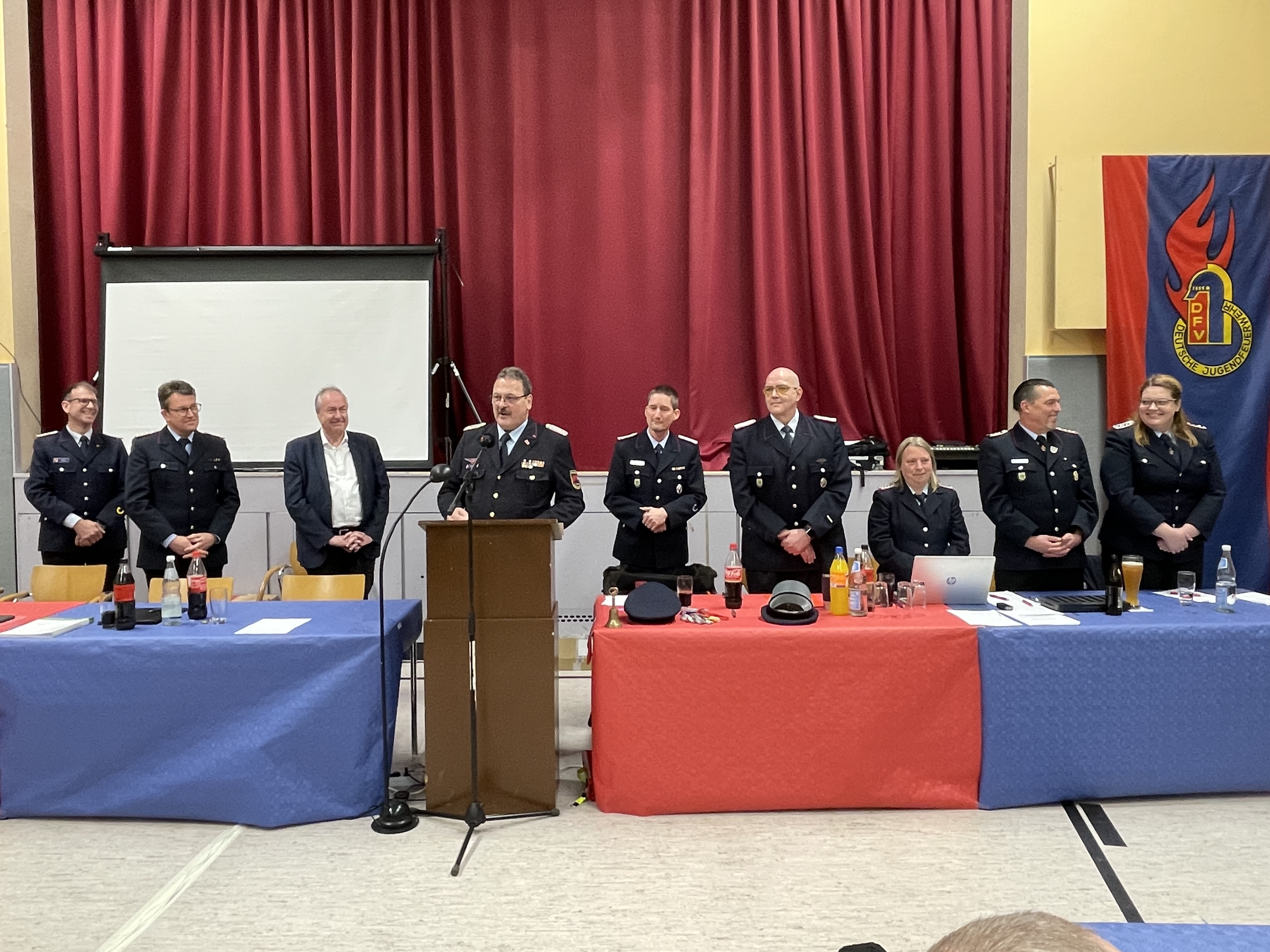 Als besonderer Gast nahm der Präsident des Landesfeuerwehrverbandes Olaf Kapke an der Versammlung teil. In seinem Bericht lobte er die gute Zusammenarbeit der Feuerwehren in Niedersachsen. Dies habe sich wieder beim Hochwasser 23/24 gezeigt, das ohne fremde Hilfe abgearbeitet werden konnte. Lediglich technisches Material musste angefordert werden. Dieses wird aber jetzt durch das Land beschafft.