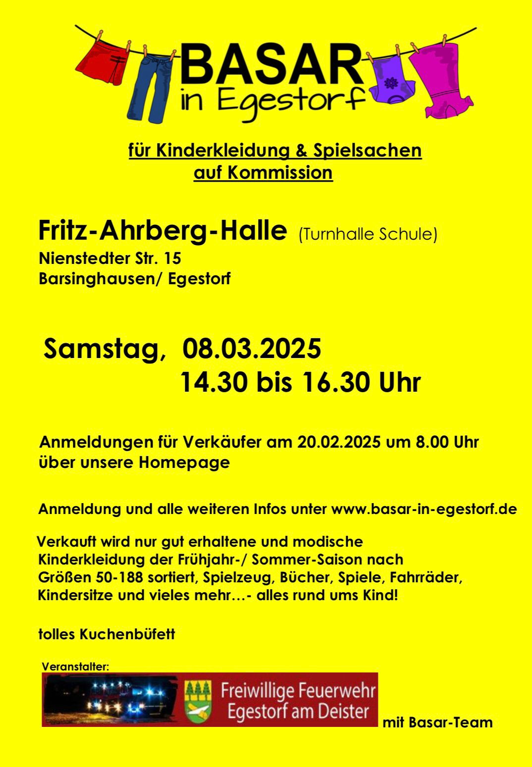 Basar in Egestorf Diesen März ist es wieder soweit, in der Fritz-Ahrberg-Halle findet wieder der beliebte Basar statt!