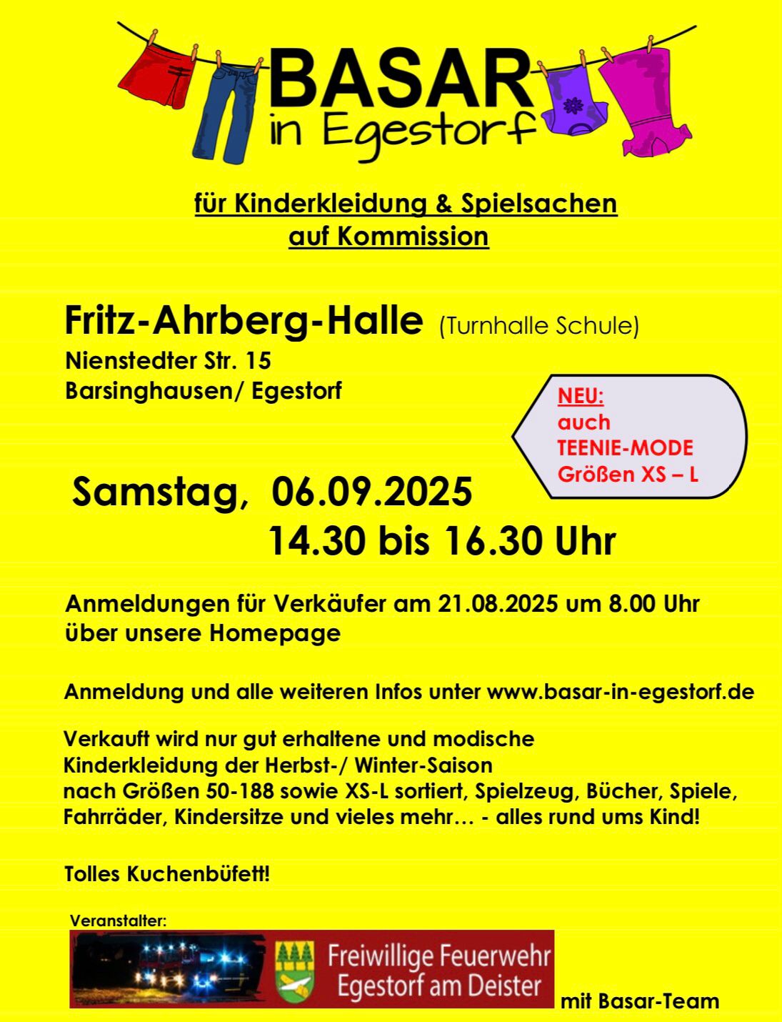 Basar im September 2025 Diesen September ist es wieder soweit, in der Fritz-Ahrberg-Halle findet wieder der beliebte Basar statt! Anbei alle Infos